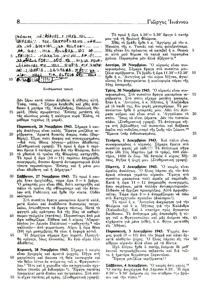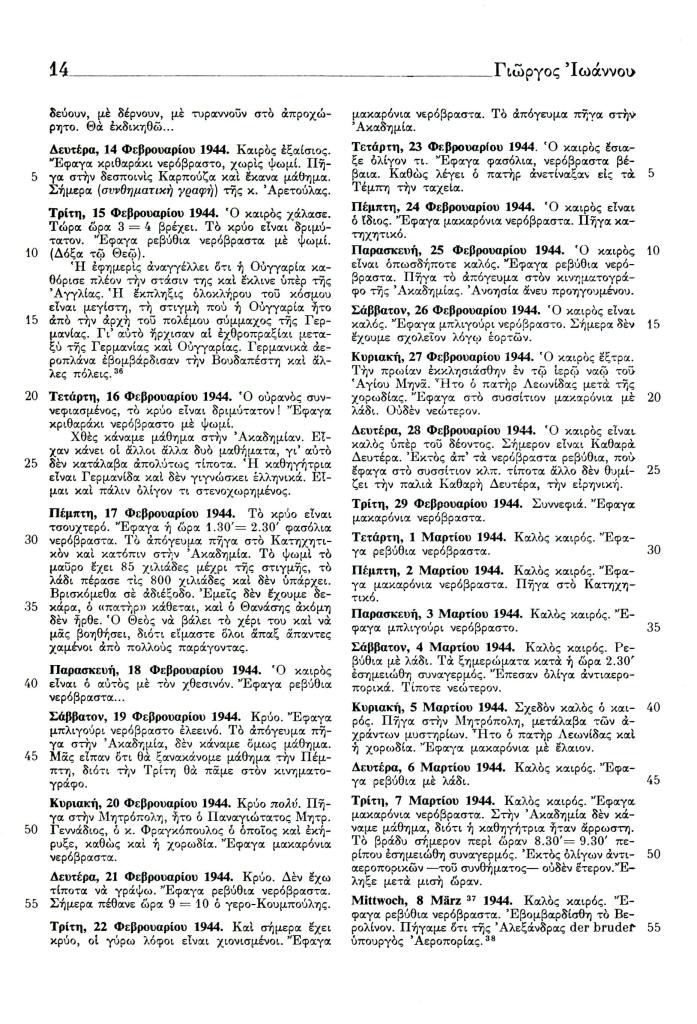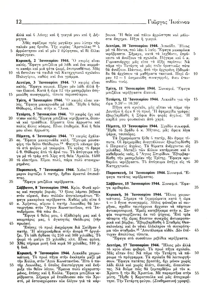 Ιωάννου Γιώργος, «Κατοχικό ημερολόγιο», Φυλλάδιο, τχ. 1 (Άνοιξη 1978), σ. 7-16