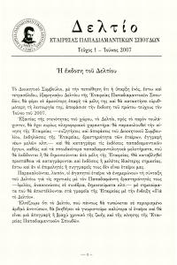 (Ανυπόγραφο), «Η έκδοση του Δελτίου», Δελτίο Εταιρείας Παπαδιαμαντικών Σπουδών, τχ. 1 (Ιούνιος 2007), σ. 1.