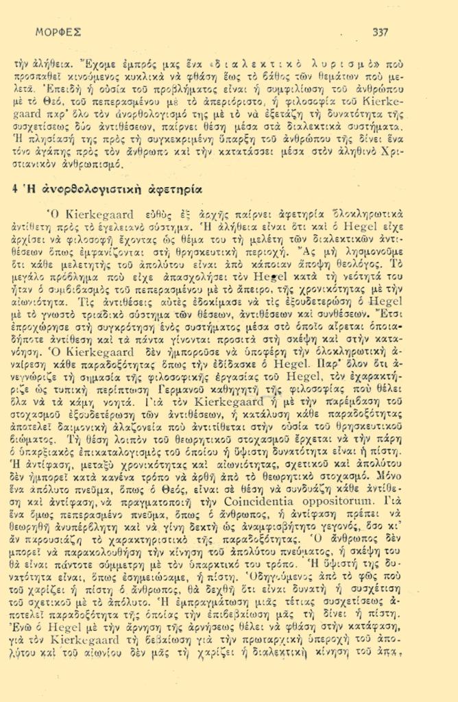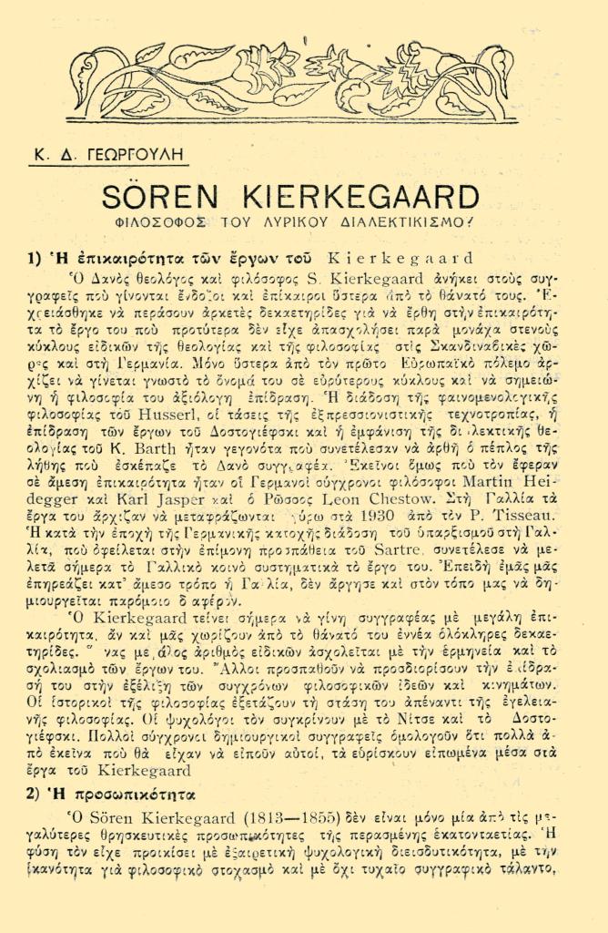 , «Søren Kierkegaard. Φιλόσοφος του λυρικού διαλεκτικισμού»,