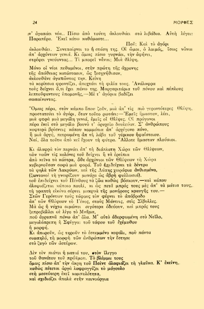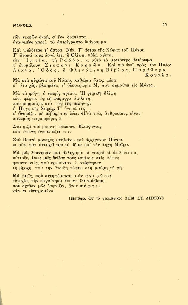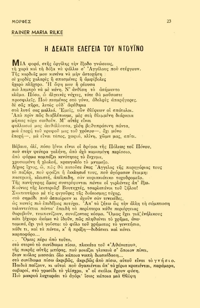 Rilke Rainer Maria, «Η δέκατη ελεγεία του Ντουίνο», Μορφές, τχ. 64 (Ιανουάριος 1952), σ. 23-25
