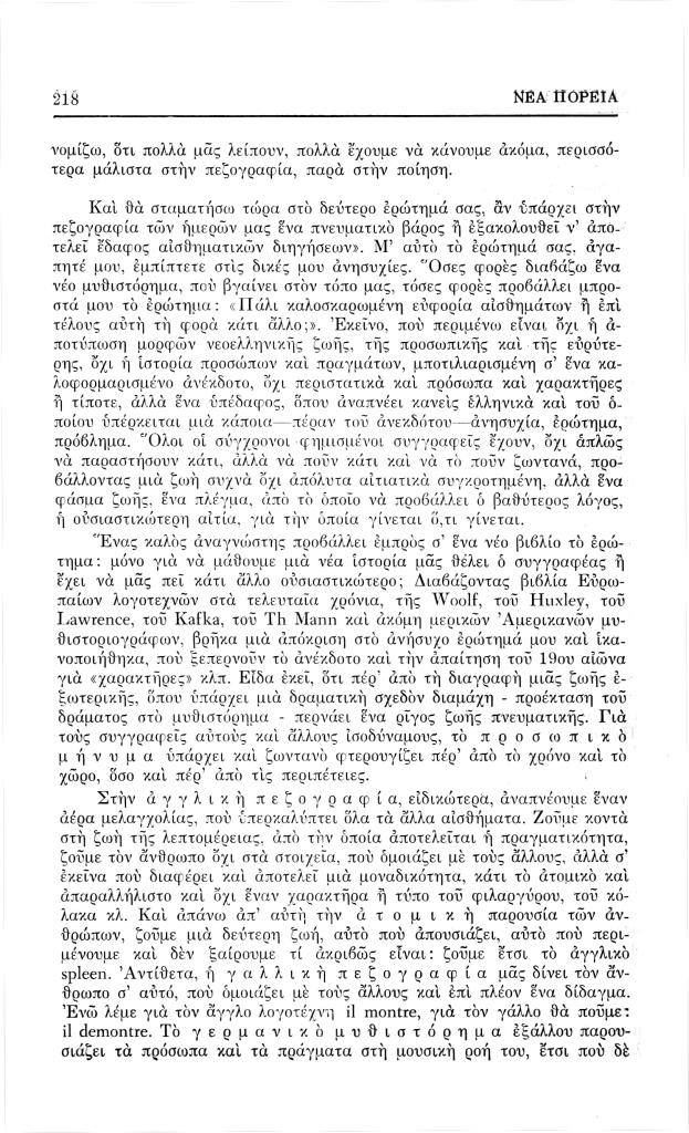 , «Συζήτηση πάνω στη σύγχρονη πεζογραφία»,