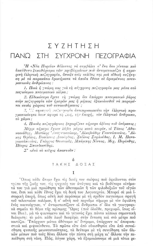 , «Συζήτηση πάνω στη σύγχρονη πεζογραφία»,