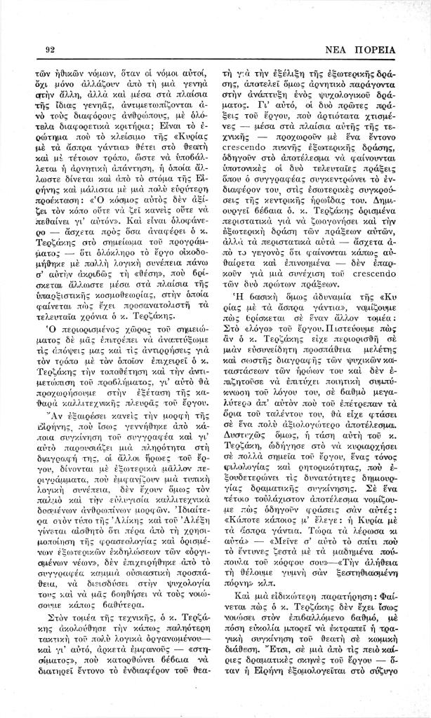 Φωτίου Γιώργος, «Το θέατρο. Θίασος ΚΘΒΕ, Η κυρία με τ' άσπρα γάντια», Νέα Πορεία, τόμ. 8, τχ. 85 (Μάρτιος 1962), σ. 91-93