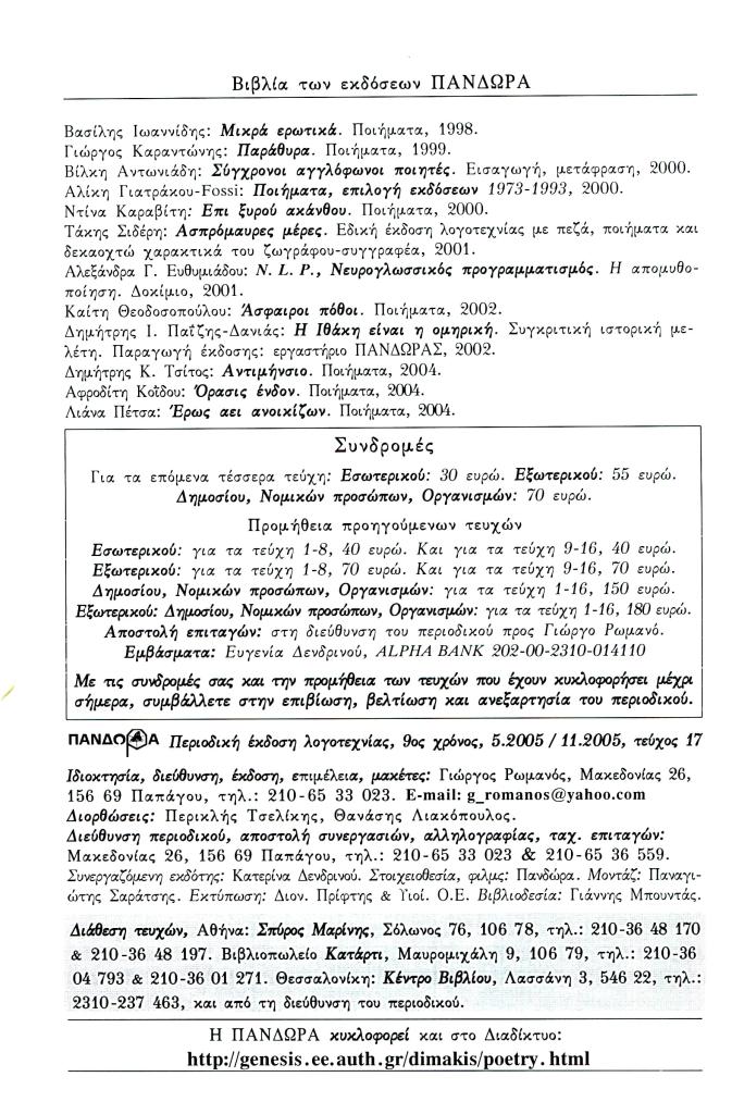 (Μάιος-Νοέμβριος 2005), σ. (έσω οπισθόφυλλο)