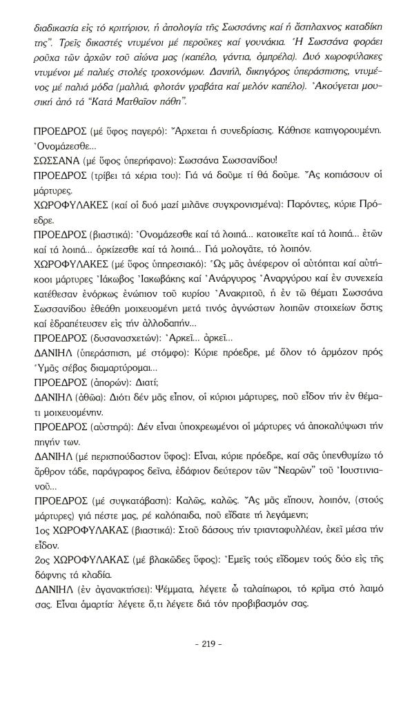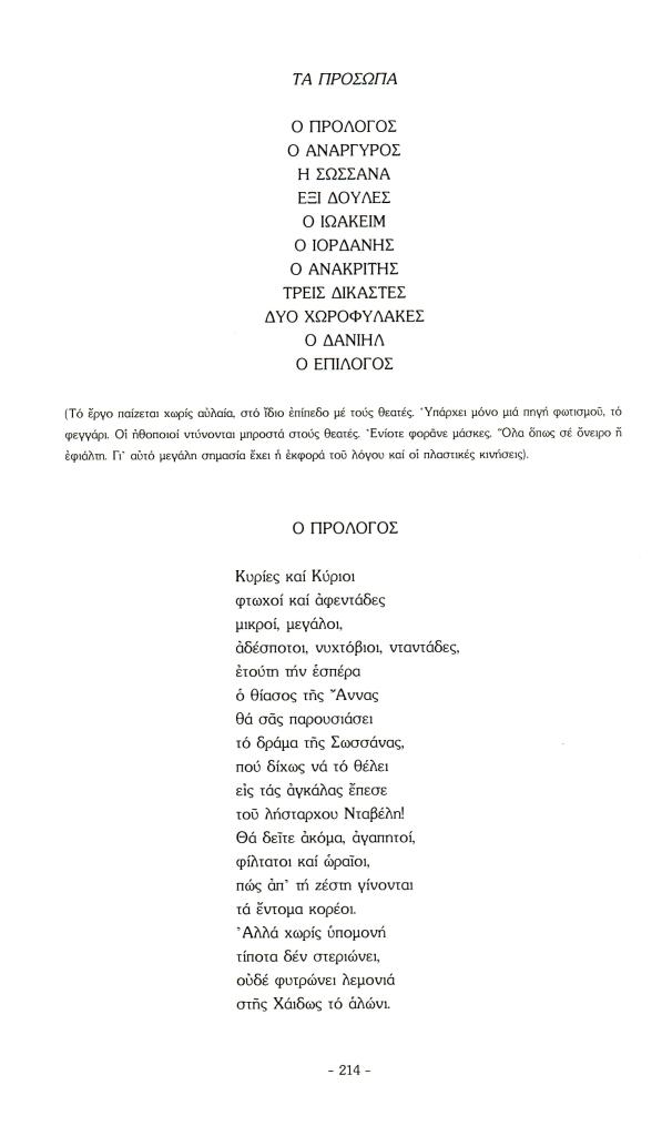 , «Όταν το φεγγάρι είναι στρογγυλό. Μονόπρακτο σε τέσσερις εικόνες, πρόλογο και επίλογο.», Πάροδος, τχ. 3 (Μάρτιος 2004), σ. 213-221