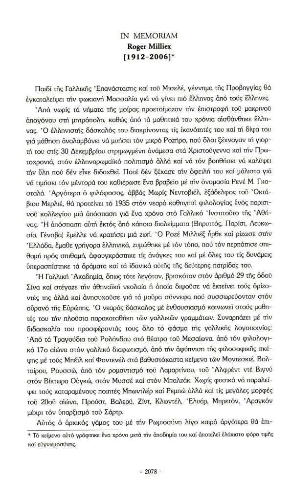 , «In memoriam Roger Milliex [1912-2006]»,
