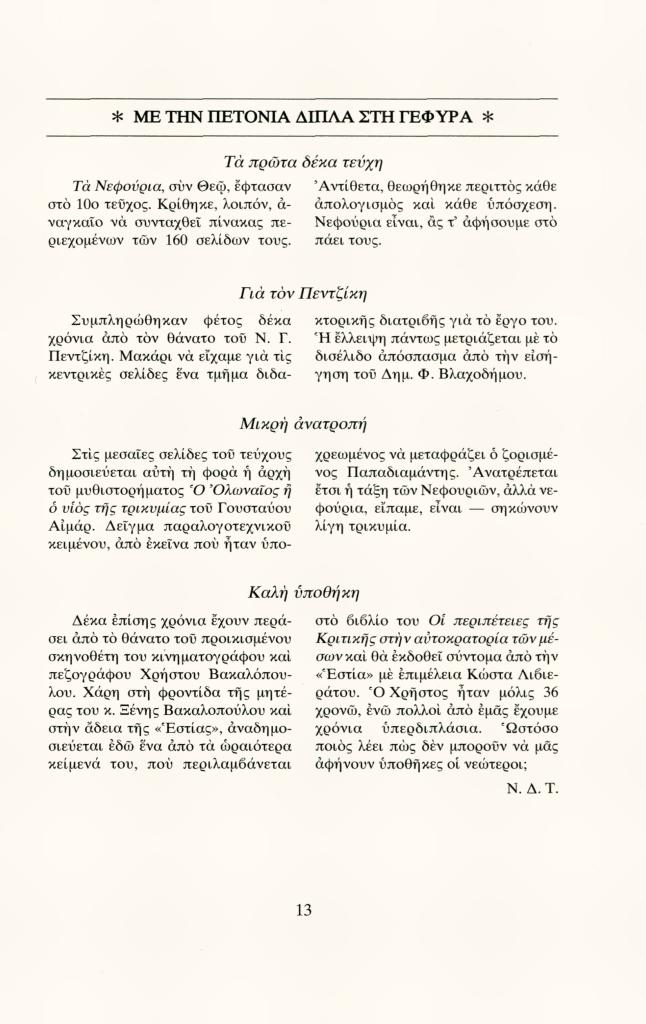 , «Με την πετονιά δίπλα στη γέφυρα. Τα πρώτα δέκα τεύχη»,