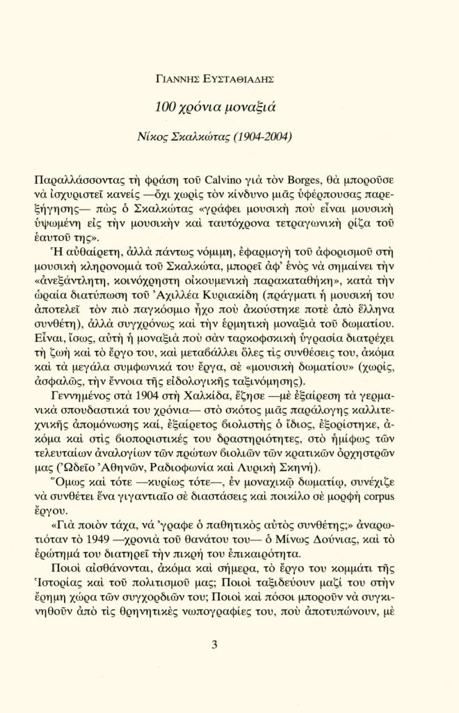 , «100 χρόνια μοναξιά. Νίκος Σκαλκώτας (1904-2004)»,