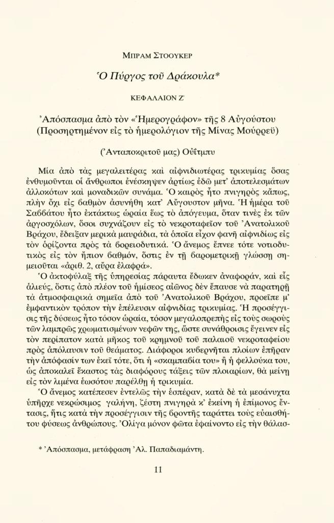 , «Ο Πύργος του Δράκουλα. Κεφάλαιον Ζ΄»,