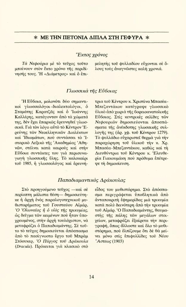 , «Με την πετονιά δίπλα στη γέφυρα. Γλωσσικά της Εύβοιας»,