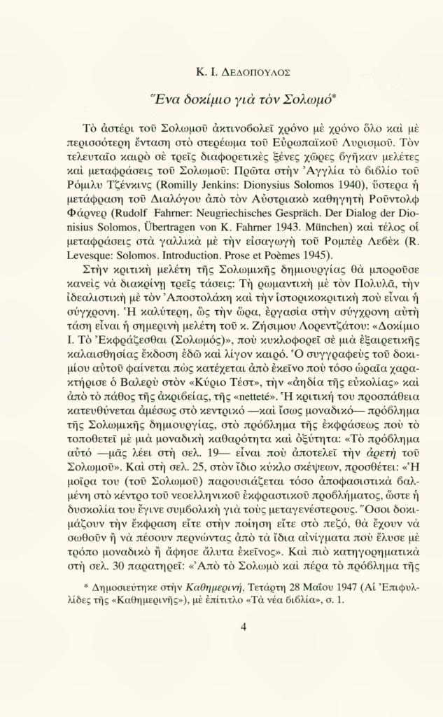 , «Ένα δοκίμιο για τον Σολωμό»,