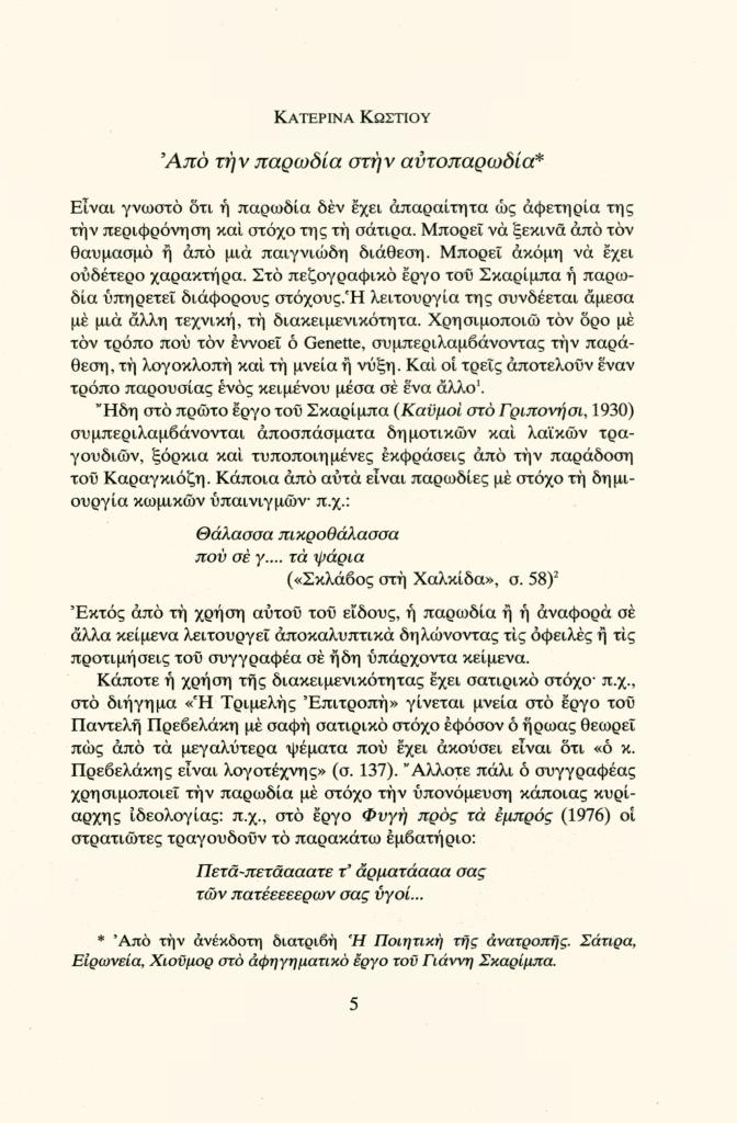 , «Από την παρωδία στην αυτοπαρωδία»,