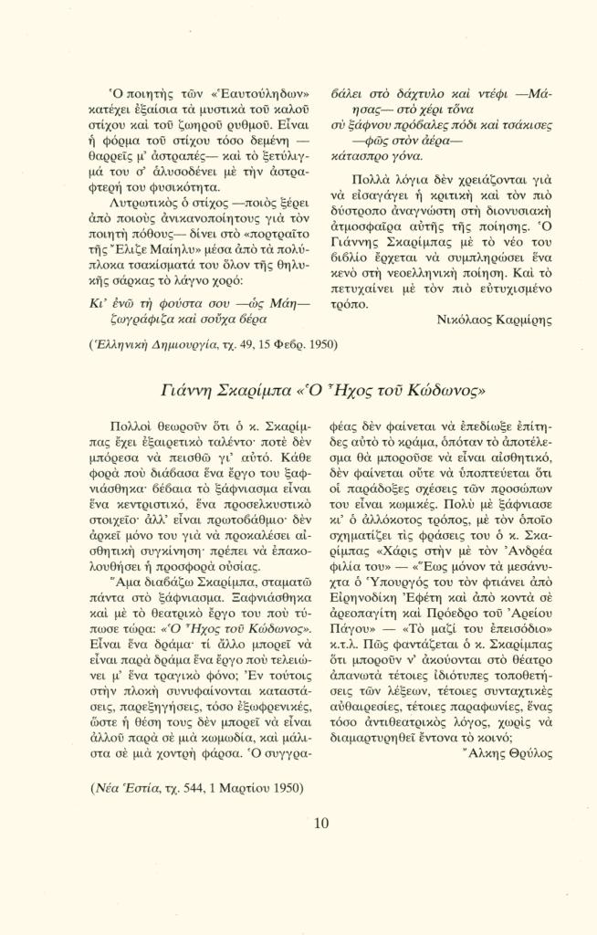 , «Η κριτική για τον Σκαρίμπα. Γιάννη Σκαρίμπα