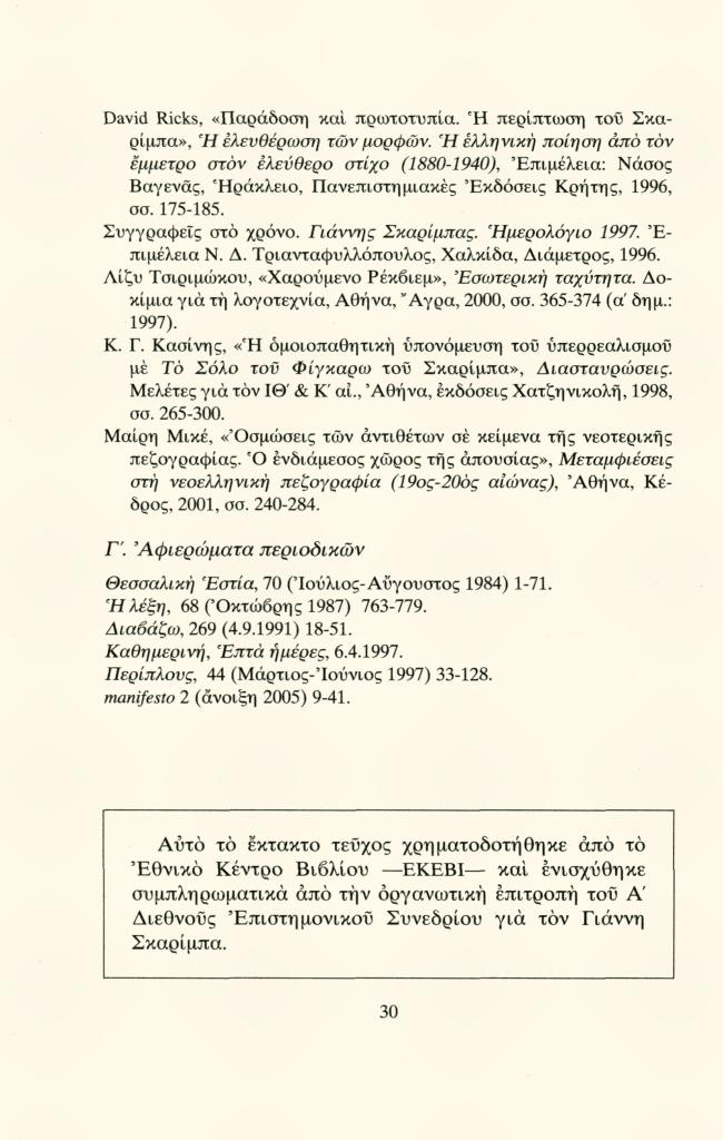 , «Επιλογή βιβλιογραφίας»,