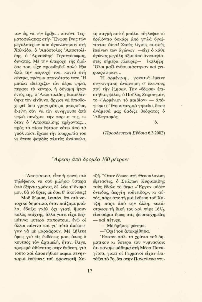 , «Αθλητικά περιστατικά της Χαλκίδας. Άφεση από δρομέα 100 μέτρων»,