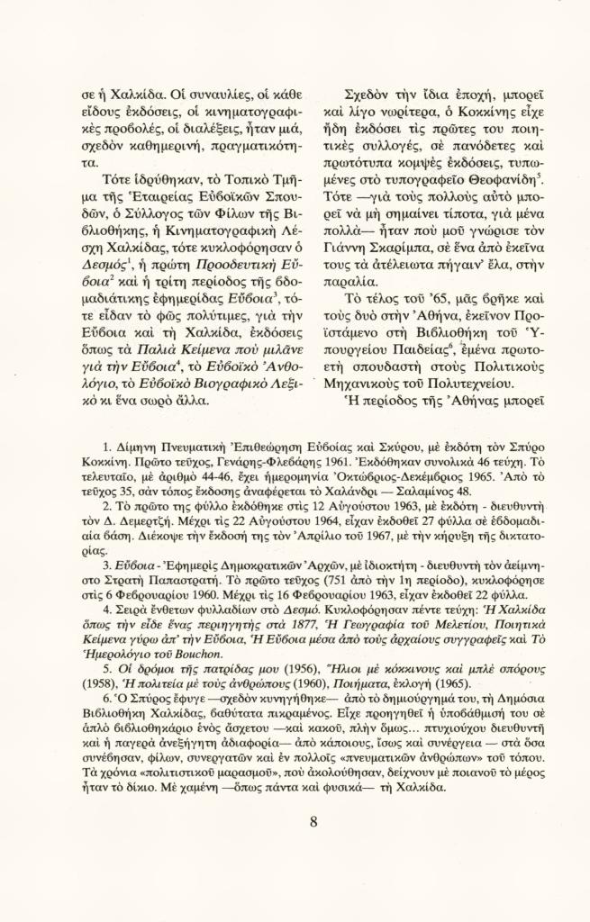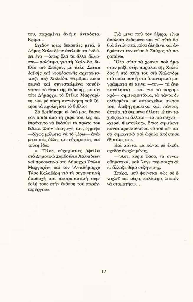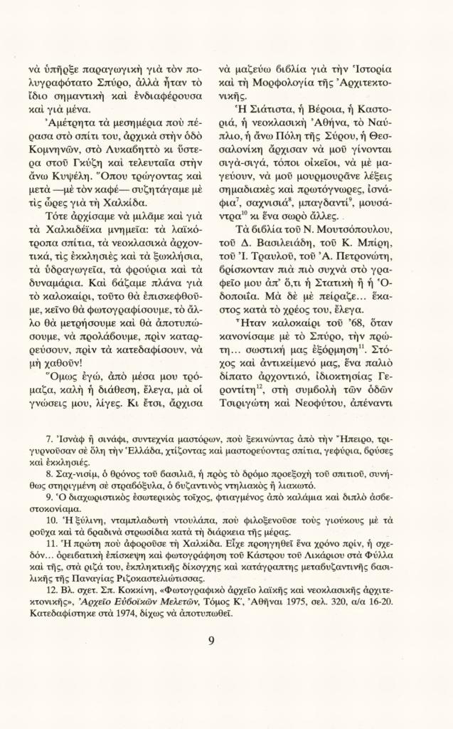 , «Αχ, αυτά τα αρχοντικά… Ένα οδοιπορικό στη Λαϊκή Αρχιτεκτονική της Χαλκίδας συντροφιά με τον Σπύρο Κοκκίνη», Τα Νεφούρια, τχ. 15 (Καλοκαίρι 2006), σ. 7-12