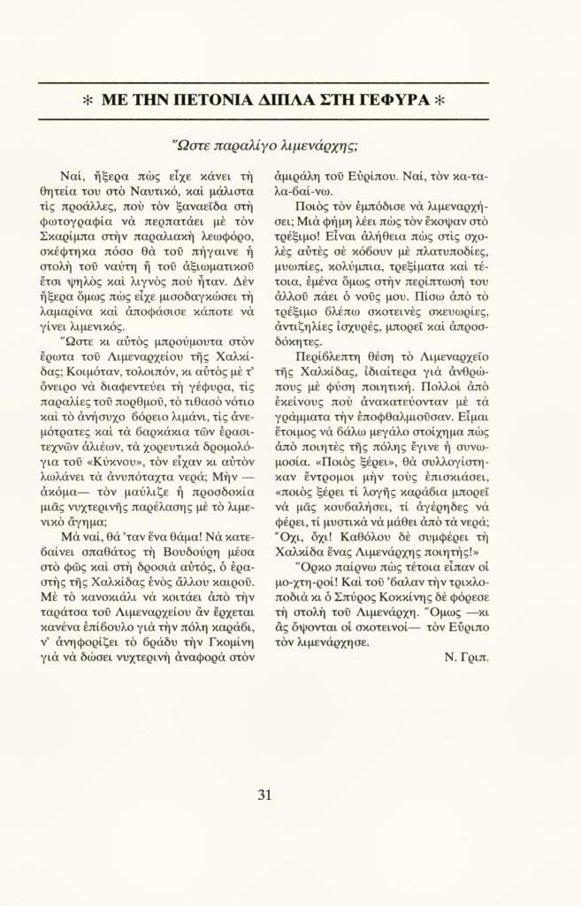 , «Με την πετονιά δίπλα στη γέφυρα. Ώστε παραλίγο λιμενάρχης;»,