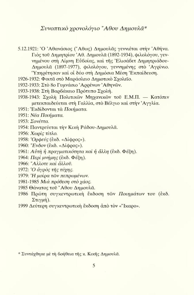 , «Συνοπτικό χρονολόγιο Άθου Δημουλά»,