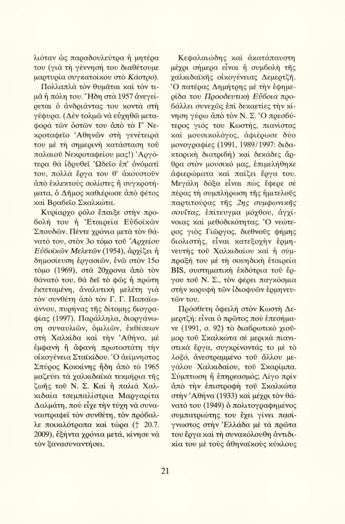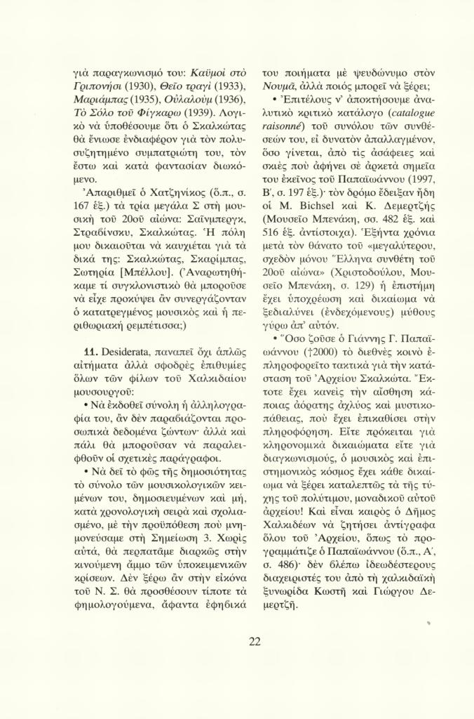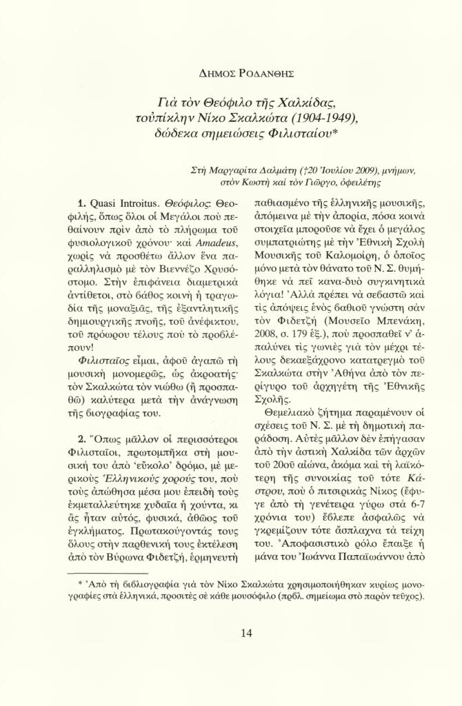 , «Για τον Θεόφιλο της Χαλκίδας, τουπίκλην Νίκο Σκαλκώτα (1904-1949), δώδεκα σημειώσεις Φιλισταίου», Τα Νεφούρια, τχ. 22 (Φθινόπωρο 2009), σ. 14-23