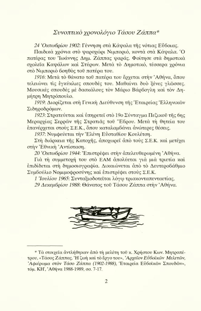 , «Συνοπτικό χρονολόγιο Τάσου Ζάππα»,