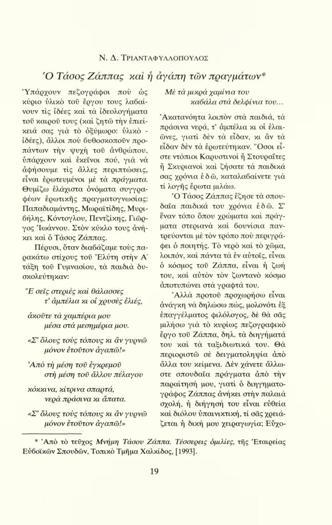 , «Ο Τάσος Ζάππας και η αγάπη των πραγμάτων»,