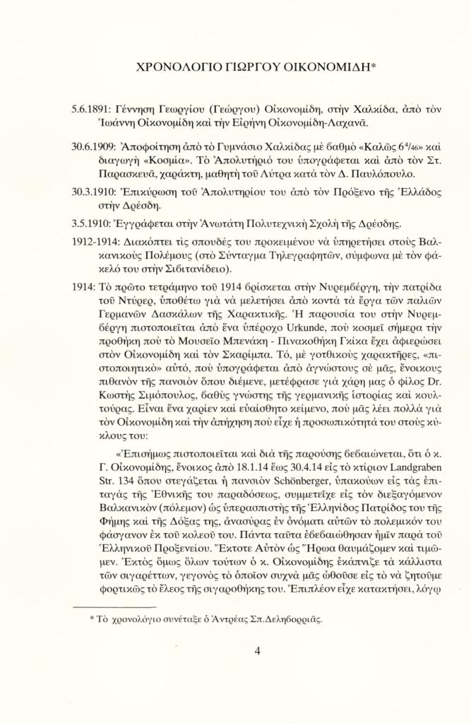 , «Χρονολόγιο Γιώργου Οικονομίδη»,