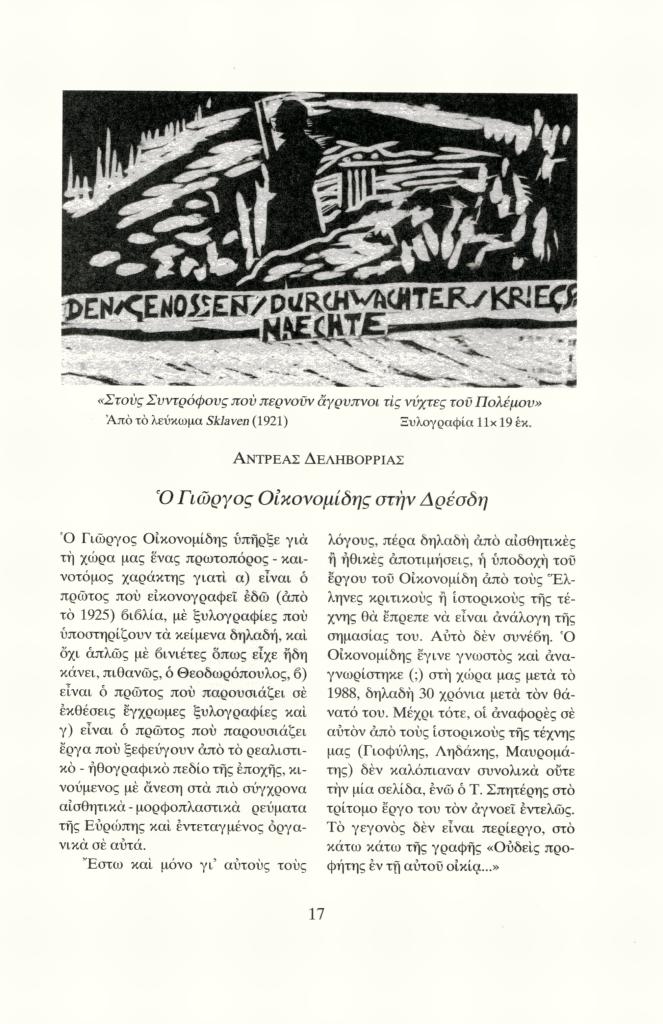 Δεληβοριάς Ανδρέας Σπ., «Ο Γιώργος Οικονομίδης στην Δρέσδη», Τα Νεφούρια, τχ. 27 (Καλοκαίρι 2011), σ. 17-23