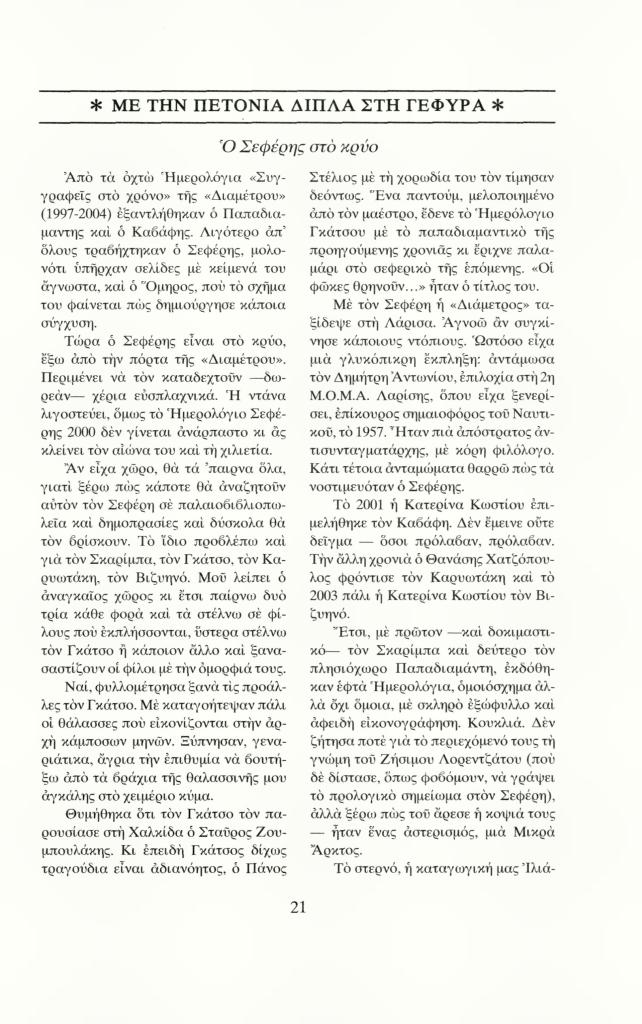 , «Με την πετονιά δίπλα στη γέφυρα. Ο Σεφέρης στο κρύο»,