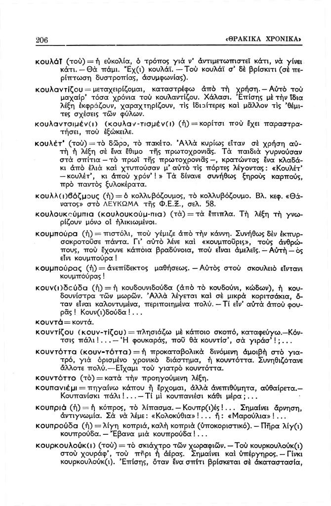 Βέικου-Σεραμέτη Κατίνα, «Λαογραφικά και γλωσσικά στοιχεία της Παληάς Ξάνθης. Μέρος Δεύτερο. Γλωσσάριο. Κ», Θρακικά Χρονικά, τόμ. 1, τχ. 4 (Αύγουστος 1961), σ. 205-207
