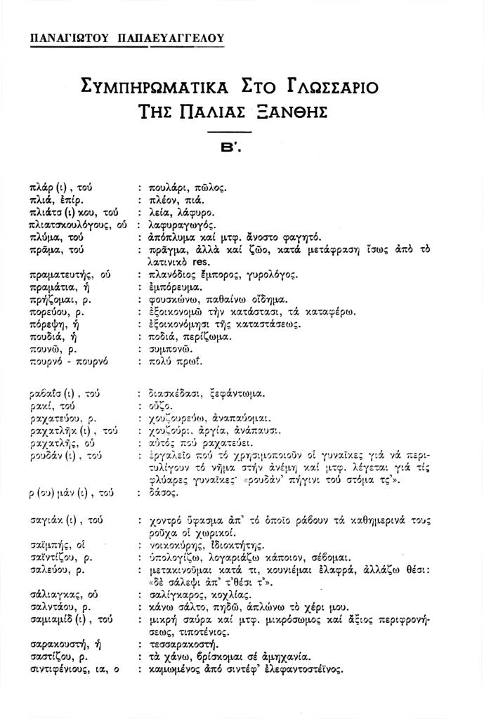 , «Συμπληρωματικά στο Γλωσσάριο της Παλιάς Ξάνθης. Β΄»,