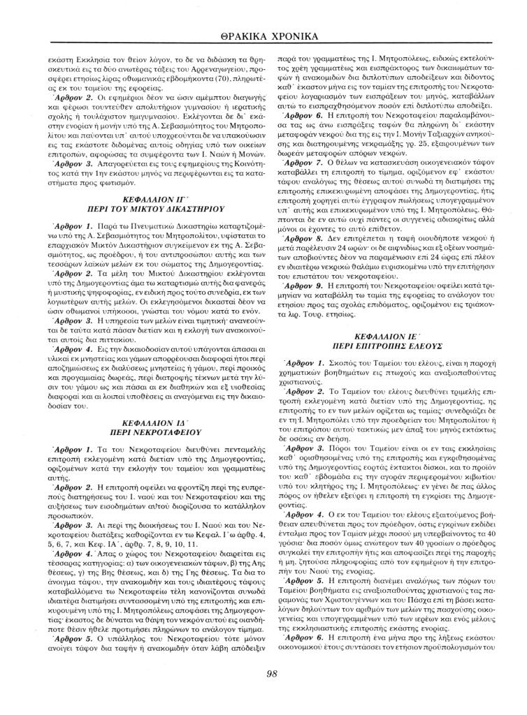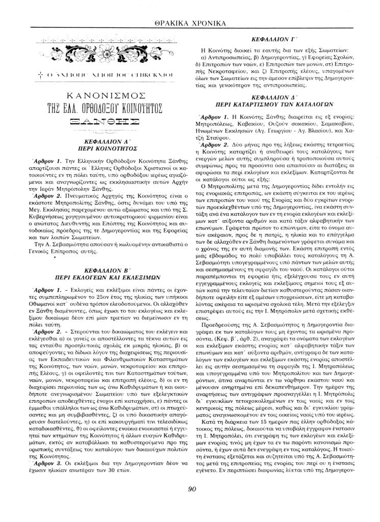 , «Κανονισμός της Ελλ. Ορθοδόξου Κοινότητος Ξάνθης»,