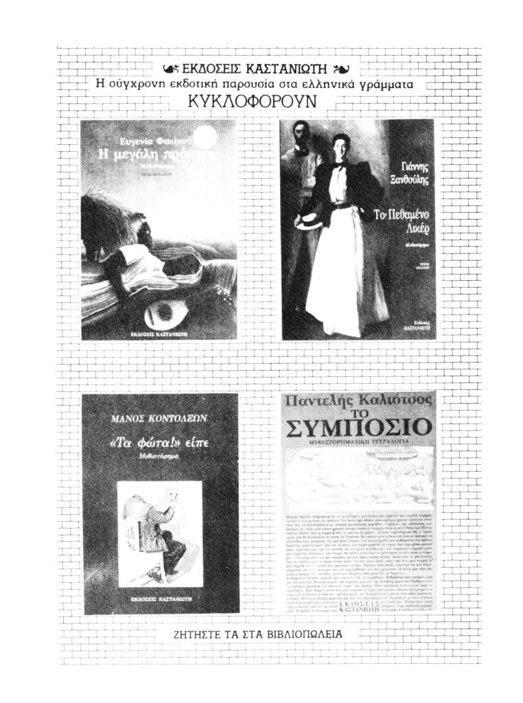 «Εκδόσεις Καστανιώτη. Κυκλοφορούν», Το Τραμ, τχ. 4-5 (Ιανουάριος 1988), σ. (εσώφυλλο)