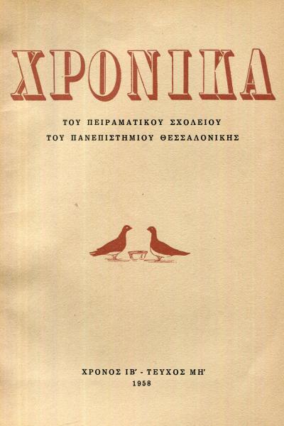 Χρονικά του Πειραματικού Σχολείου του Πανεπιστημίου Θεσσαλονίκης 1958
