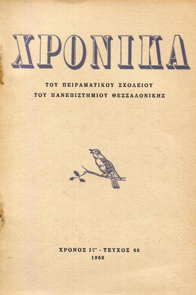 Χρονικά του Πειραματικού Σχολείου του Πανεπιστημίου Θεσσαλονίκης 1962